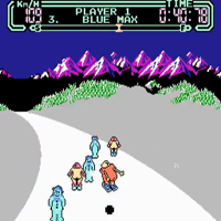 This is a funny simple game with fast graphic. But it has not such a variety, it will be boring after a while. But for a quick game it is good enough. The first three courses are simple but then it goes harder. I came to course 5. But it is not only slalom, it is sometimes downhill skiing. It is one of the first NES-Games I played. The snowman looks sweet!