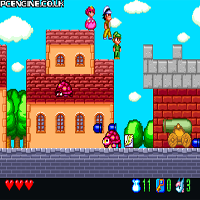 This game makes fun. Sometimes it is tricky to find the next level. Blue Blink is a japanese comic-series. There are five levels, divided in five parts. You can select one of the three guys you are playing. The one can better jump, the other better shoot. When you collect coins you get more energy. The sprites look very sweet.