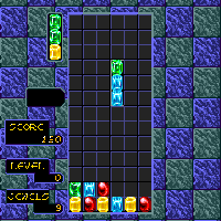 This game is made by Telenet in the year 1991. This is a puzzle-game. You control with the stick, with A or B you switch the tiles of a row down. With stick down you can move your tile faster down. In the begin you can select between arcade and practice. Then you can select the difficulty. In easy-mode you get hints. You must get three tiles of the same color together.