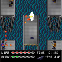 This game is made by Pack in Video in the year 1990. This is an action-game. You control with the stick, with A you shoot. It is after the movie with Bruce Willis. You start in a forest without a weapon. But you can grab a gun by the slain enemies. When you fall in the black holes you are dead. The text of this game is in japanese.