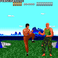 This game is made by Hudson in the year 1987. Here you are a fighter which looks like Bruce Lee. You move from left to right and must fight enemies. The enemies are grey monks, later they are green or orange. Also you must kick away poles, they are flying to you. On each level, which looks different, is a endboss awaiting you. With the A-Button you hit, with B you kick. First you are in the wilderness, later in a temple.