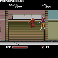This game is made by Taito in the year 1989. This is a fighting-game. In the begin you can select between two fighters. With the stick you move, with the A-Button you throw a shurikan, with B you hit. You can choose a difficulty level. There are some old guys which have a big condition.