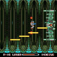 This game is made by Capcom in the year 1989. This is a sci-fi-shooter. You move from left to right, the screen is horizontal scrolling. With the stick you move, with the A-Button you shoot ahead, with B you shoot backwards. This game was first a coin-op. Some aliens leave a symbol, when you shoot it it changes. There are seven different extra-types. There are satellites or stronger laser, auto-fire or more speed.