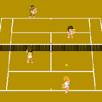 This game is made by Namco in the year 1989. This is a tennis game. You can play tournaments or the RPG-Mode. With the stick you move your player, with the buttons you hit the ball. You can also play with a friend a double. The screen scrolls in all directions. There are 12 men and six women you can choose. With an adapter for the pc-engine can four player make a double-match.